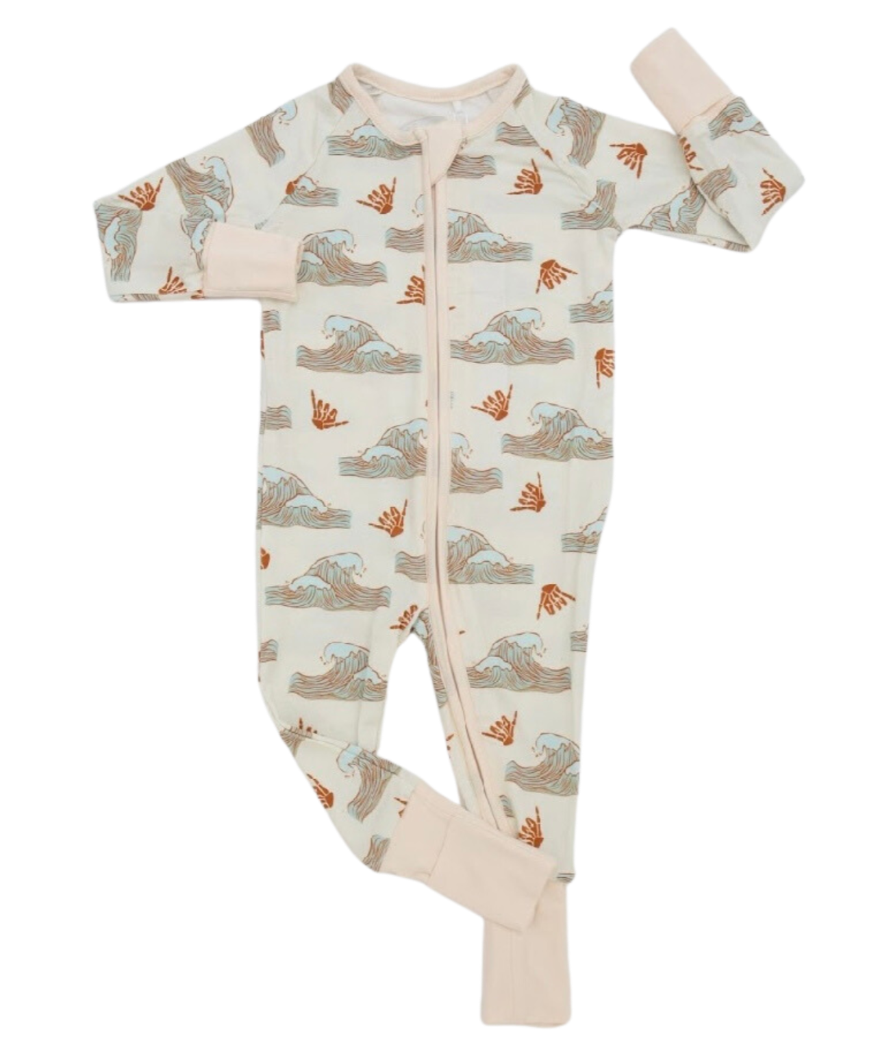 Catch a wave of restful sleep (or play!) with our Catch a Wave Sleeper. Made with breathable bamboo, it's tough enough to stand up to your wildest dreams, featuring fold-over hand and foot flaps to keep your little one snuggled in tight. And getting in (or out) is a breeze with its two-way double zipper!